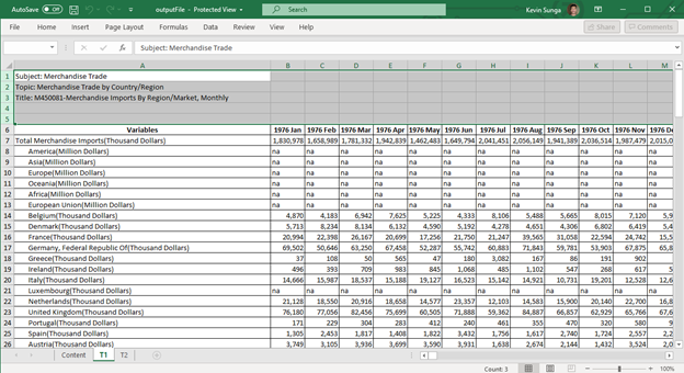 Let’s also rename the “Sheet” column to “Trade Type” to help us identify whether a row is an import or an export. We can hide the “Table Name” column since it’s a repetitive field.