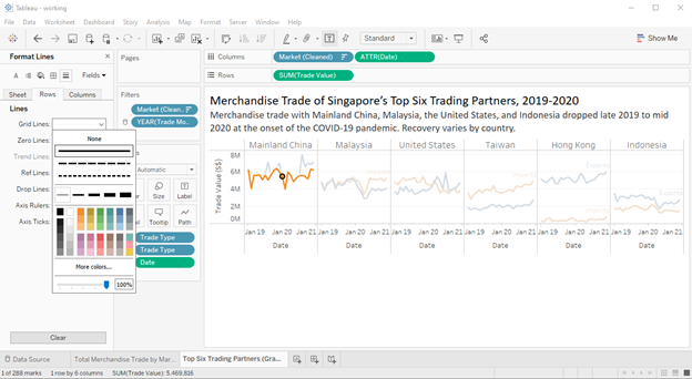 Now, let’s work on the axes. Rename the y-axes to “Trade Value (S$)” to clarify the currency.