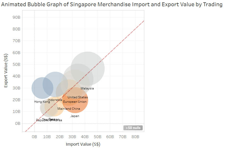 | S29 | Add a title “Animated Bubble Graph of Singapore Merchandise Import and Export Value by Trading Parnter, |