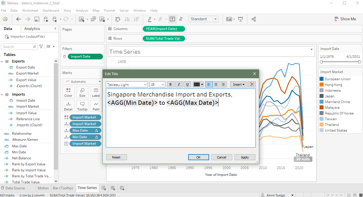| S35 | Change the title to: Singapore Merchandise Import and Exports, <AGG(Min Date)> to <AGG(Max Date)> |